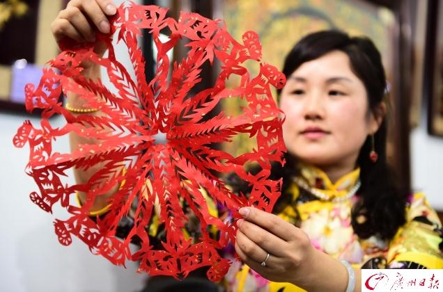 千件大師作品亮相廣州 2017年3月1日,第52屆全國工藝品交易會開幕式中國進(jìn)出口商品交易會展館舉行。圖為:佛山剪紙。廣報全媒體記者王燕 攝 曾衛(wèi)康文