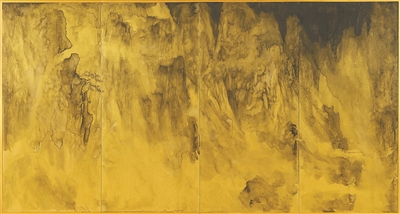 “知新”是近年系列的水墨探索,梳理丘挺的“思古求新”。其中“曠度”展廳中間還原了2010年丘挺在波士頓“與古為徒”展中《西山嵐色》與趙令穰《湖莊清夏》的呼應(yīng);以及丘挺近些年的水墨探索,尤其屏風(fēng)與音樂相關(guān)的創(chuàng)作,以視覺聽覺結(jié)合的方式呈現(xiàn)。屏風(fēng)《幽谷圖系列》創(chuàng)作是對山水具體的畫材形式的解構(gòu),既不抽象也不具象,試圖以水墨回到“恍兮,惚兮”的意象性。
