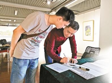 現(xiàn)場(chǎng)觀眾請(qǐng)閆國(guó)星簽名。 深圳晚報(bào)記者 秦瑤 攝