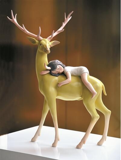 賈曉鷗作品《悅悅》。以天使少女為形象的悅悅代表著喜悅,包含著童話的美感,又?jǐn)y帶著對(duì)未來(lái)的憧憬與希冀。