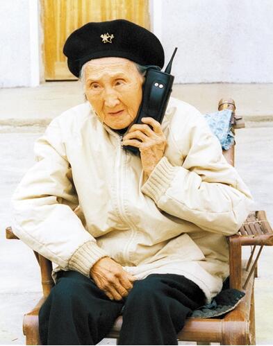 王琛攝影作品。1993年3月,湖南省寧鄉(xiāng)縣南田坪鄉(xiāng)宜坪村,王琛從廣州回到湖南見奶奶,奶奶毛氏用王琛的手機與他父親通話。