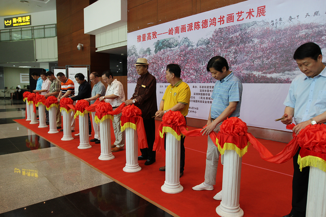 深圳新聞網(wǎng)訊(記者周錦春 通訊員孫善文)5月6日,雷州籍嶺南畫派青年畫家陳德鴻書畫藝術(shù)展在寶安區(qū)石巖文化藝術(shù)中心舉行,這是陳德鴻舉辦的第三十五場(chǎng)個(gè)人作品展,也是其在深圳地區(qū)舉辦的第七場(chǎng)。 本次畫展由寶安區(qū)美術(shù)家協(xié)會(huì)主辦,石巖街道黨建服務(wù)中心、深圳市雷州商承辦,廣東電視臺(tái)、深圳市湛江商會(huì)、深圳鐘國(guó)康印館、《書法報(bào)》深圳站、《伶仃洋》雜志社等單位協(xié)辦,展出了陳德鴻近期創(chuàng)作的60幅書畫作品, 200多名書畫名家和書法愛好者到場(chǎng)欣賞、祝賀,廣東電視臺(tái)及深圳多家媒體現(xiàn)場(chǎng)采訪報(bào)道。 ? “雅量高致”為陳德鴻在藝術(shù)上取得相當(dāng)突顯的成績(jī)后,其大學(xué)導(dǎo)師、書畫名家周彥生先生所題贈(zèng),其意為氣度寬宏,情致高雅,雅正不俗。這四個(gè)字也成為本次展覽的主題。 嶺南畫派成立于上世紀(jì)三十年代,秉承“折衷中外,融合古今”這一宗旨,不但保留了屬于自己的藝術(shù)風(fēng)格及繪畫理念,還將至適應(yīng)時(shí)代發(fā)展,創(chuàng)制出有時(shí)代精神、有地方特色、氣氛酣暢熱烈、筆墨勁爽豪縱、色彩鮮艷明亮、水墨淋漓、暈染柔和勻凈的現(xiàn)代繪畫新格局。 陳德鴻2004年畢業(yè)于廣州美術(shù)學(xué)院。求學(xué)期間,得到了關(guān)山月、黎雄才、陳金章、周彥生、林豐俗、劉書民等嶺南名家的指導(dǎo),從而為今日的異彩奠定了堅(jiān)實(shí)的基礎(chǔ)。在本科時(shí)期又直接受教于李勁堃老師、張彥老師。畢業(yè)后,他一直住在廣州美術(shù)學(xué)院,跟隨導(dǎo)師們上山下鄉(xiāng)寫生創(chuàng)作,前后整整十年,繪畫水平漸露崢嶸,并得到了導(dǎo)師的喜愛和贊賞。 十多年來,陳德鴻常往云南、山西、河南、廣西、安徽等地寫生,行萬里路,讀萬卷書,十年風(fēng)雨使得他有開拓的眼界來審視自身的繪事。在藝術(shù)的道路上,他不斷地探索著,在大自然間理解傳統(tǒng)繪畫的筆墨結(jié)構(gòu)與自然結(jié)構(gòu)。這種繪畫軌跡,亦是陳德鴻探索時(shí)期的痕跡,墨氣輕重有度,使得樸素人生詩意盎然。廣東省宣傳部原副部長(zhǎng)胡中梅和區(qū)美術(shù)家協(xié)會(huì)主席閻敏在看了畫展后認(rèn)為,陳德鴻的作品畫面布局開合有致,氤氳雅麗,寫出了意境,體現(xiàn)出他對(duì)筆墨技法的運(yùn)用已經(jīng)純熟自如,返璞歸真,其作品意境獨(dú)特、功力深厚、構(gòu)圖新穎、集中體現(xiàn)了畫家的自然觀與社會(huì)審美意識(shí)。