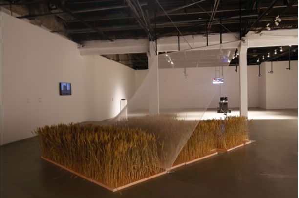 《群落交錯(cuò)帶》包含一個(gè)雙向的敘事結(jié)構(gòu)。兩點(diǎn)之間的空間,不是一條線,而是一片虛空,好像一個(gè)可以不斷開合的通風(fēng)口袋,容納無限精神與想象之力。故事是關(guān)于一個(gè)古怪的航空棲息地,那里盤旋著一個(gè)進(jìn)化的自然-技術(shù)飛行復(fù)合體(飛行器)。這個(gè)故事還講述著:一個(gè)凡人走進(jìn)自然,結(jié)合植物和電子物件創(chuàng)造出一個(gè)會(huì)飛翔的生命,接著捕捉記錄下這個(gè)新的飛行生物,并將其融入一個(gè)有關(guān)大氣的真實(shí)-虛構(gòu)作品。