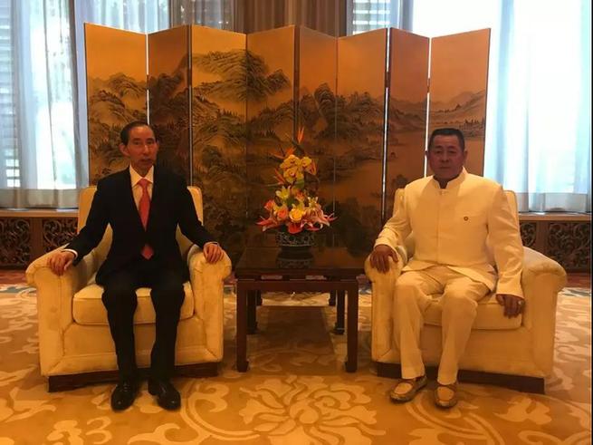 天基權(quán)董事長/總裁釋延豹與中國國際文化傳播中心執(zhí)行主席、中韓國際電影節(jié)中方委員長龍宇翔