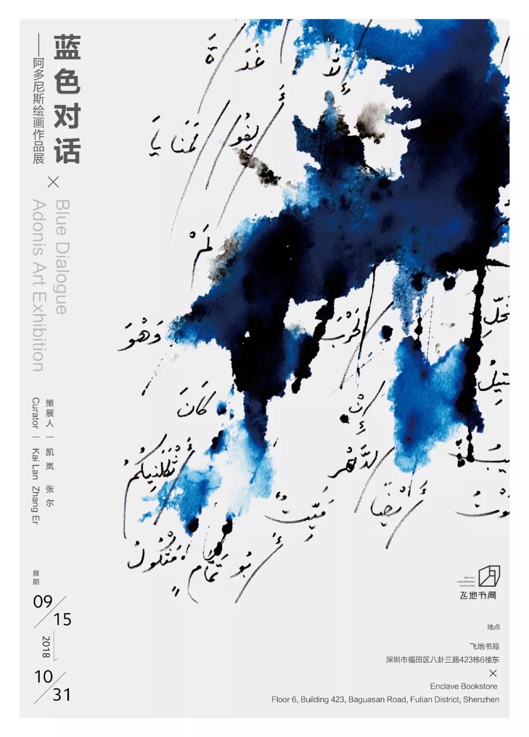 飛地書局將于9月15日至10月31日展出“藍(lán)色對話——阿多尼斯繪畫作品展”。展覽由凱嵐與張爾策劃,呈現(xiàn)詩人阿多尼斯五個(gè)系列的繪畫。