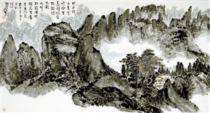王和平不僅能書寫2尺的大字,還能寫篆書、隸書、行書、草書、楷書,他尤其擅長以指書寫長線條幅,還能書寫小到1寸左右的楷書、行書、草書等各種書體?!皬乃摹饵S山系列》,我看到了一個堅強的古典腳步,追尋在范寬的《谿山行旅途》中,沐李唐的《萬壑松風圖》,聽馬遠的《踏歌圖》……一個精美絕倫的藝術時代遠逝而去,念天地之悠悠,獨愴然而涕下。留幽幽懷古者,追憶圣賢高士清歌古琴于卷軸中的絕美風騷。王和平和我都是這個幽幽懷古者,追求高貴古典精神的尋賢之人?!边@是評論家豐川在他的《心有千像,十指墨弦》一文中評價王和平的指書所述。