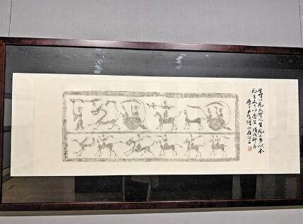 整個展覽分為“集印為詩”“詩意丹青”“我拓我家”三個主題板塊。以書法、拓片、山水畫等形式,豐富立體地展示了侯家三人多年來的藝術(shù)創(chuàng)作歷程。其中,“集印為詩”主要展現(xiàn)了侯軍多年來用收集的印章印文組合創(chuàng)作而成的一首首詩詞,以及諸位書家創(chuàng)作的詩書畫印作品?!拔彝匚壹摇眲t主要呈現(xiàn)了侯軍夫人李瑾平日以家為主題創(chuàng)作的傳拓作品,其中大部分皆由各地著名書畫家題跋或配畫,形式新穎,雅俗共賞。據(jù)了解,李瑾鐘情于傳統(tǒng)書畫,喜愛戲曲及民間剪紙,尤其喜歡傳拓藝術(shù)。在“詩意丹青”主題中,則集中展示了侯軍女兒侯悅斯所創(chuàng)作的優(yōu)美詩詞,并由畫家田耘、書法家朱德玲等以詩詞為題,創(chuàng)作書畫作品,構(gòu)成詩書畫印相交融的藝術(shù)呈現(xiàn)。