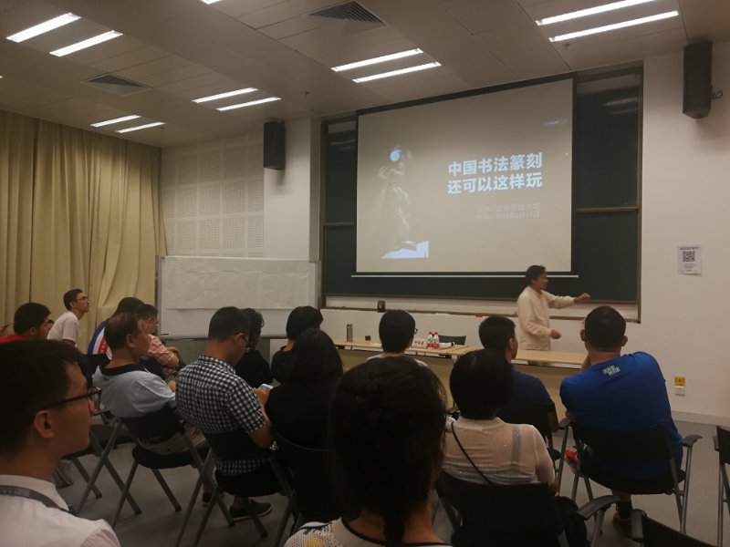 在2個小時的講座中,鐘國康妙語連珠,用生動幽默的語言將博大精深的書法篆刻文化表現(xiàn)得淋漓盡致,講座現(xiàn)場掌聲連連。鐘國康認為,書法篆刻之術(shù),只有筆性、墨性、石性、紙性、心性,全方位嚴謹,筆力勁駿,心手相應(yīng),技藝熟練,才能做到庖丁解牛,勢如破竹,可進可退,正可謂“惟習(xí)之至熟,自可心手相應(yīng)”。他還現(xiàn)場潑墨揮毫,演示篆書的寫法,詳細講解并現(xiàn)場演示了篆刻的方法,重點分享自己在單刀法和雙刀法上的獨特見解。單刀法要“有多狠刻多狠,有多猛刻多猛,有多深刻多深,有多長線條刻多長線條”,而雙刀法即在“單刀之回馬槍重刻一遍相反之單刀法”。一些幸運的書法、篆刻愛好者還通過搶答的方式,獲贈書法篆刻作品。(通訊員 孫善文)