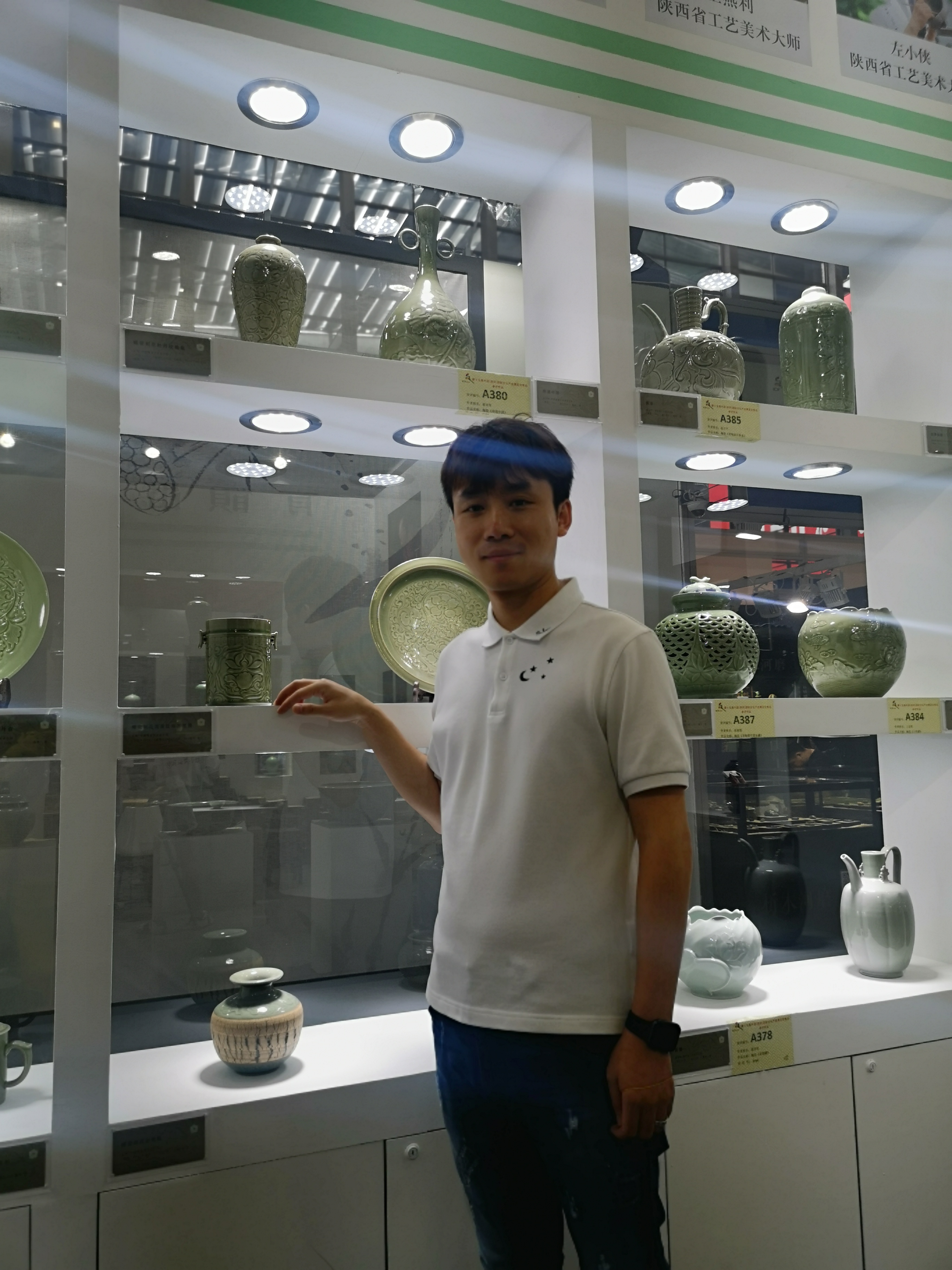 據(jù)了解,此次文博會中國工藝美術(shù)大師孟樹鋒先生共帶來了十六件作品參展,同時(shí)還有省級以上的美術(shù)大師作品,他們沉穩(wěn)雄渾,精美絕倫,代表了耀州青瓷年輕一代的工藝及水準(zhǔn)。