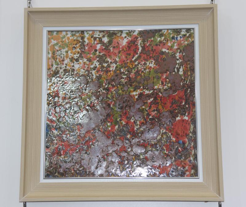 高溫顏色釉板畫則是則是使用各種色彩相融合后,便產(chǎn)生粉化作用,紅彩變成粉紅,綠彩變成淡綠,黃彩變成淺黃,其他顏色也都變成不透明的淺色調(diào),并可控制其加入量的多寡來獲得一系列不同深淺濃淡的色調(diào),給人粉潤柔和之感。