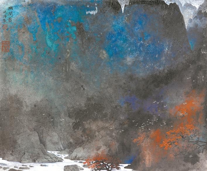 晚年,宋文治開始了以潑彩法入畫,在嚴謹?shù)姆ǘ戎腥谌肓嗽S多偶發(fā)性的生動效果,畫面從此氤氳彌漫、色彩斑斕,其個人風格亦發(fā)生了較大變化,使“宋家山水”的面貌進一步得到確立。此次展覽共展出宋文治所創(chuàng)作的四十多件精品,這些作品主要展現(xiàn)宋文治藝術(shù)從“中年出新”到“老年求變”的創(chuàng)作軌跡及藝術(shù)面貌。