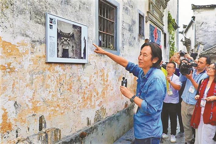▲2018年應(yīng)天齊帶領(lǐng)嘉賓在“應(yīng)天齊西遞村藝術(shù)館”觀(guān)摩畫(huà)展。