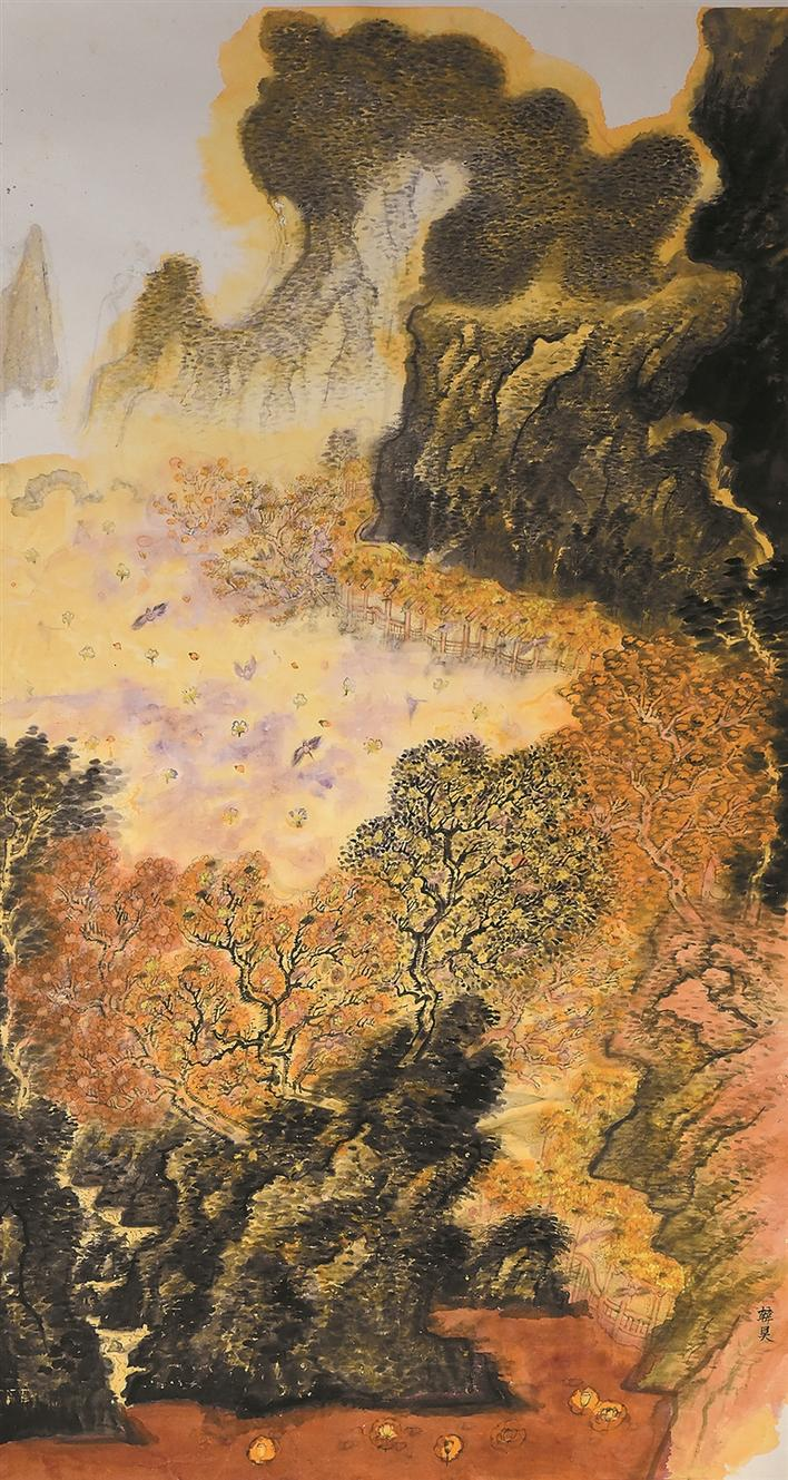 作為80后畫家,韓昊研究光在中國繪畫中獨(dú)特的審美價(jià)值和精神內(nèi)涵,同時(shí)也有意識(shí)地將光元素運(yùn)用在自己的山水畫創(chuàng)作中,在前人的基礎(chǔ)上融入了當(dāng)代意識(shí),以表達(dá)自然的真實(shí)感和意境的抒情性、直觀性,給人既夢(mèng)幻空靈又清新詩意的視覺效果,大有“以追光躡影之筆,畫通天盡人之懷”的境界。