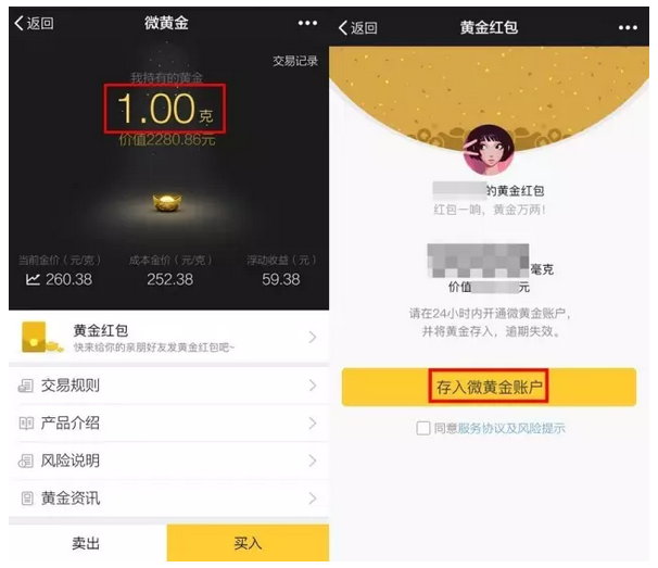 近日,財付通與工商銀行聯(lián)合推出了【騰訊微黃金】(下稱“微黃金”)這一在線黃金交易創(chuàng)新產(chǎn)品?!包S金紅包”是在該平臺基礎(chǔ)上提供的服務(wù)。用戶可以將本人持有的黃金份額以紅包的形式轉(zhuǎn)讓給親友,形式表現(xiàn)為“黃金紅包”。