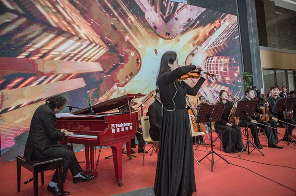 琴聲時而舒緩如流泉,時而激越如飛瀑,時而清脆如珠落玉盤,時而低回如呢喃細語……鋼琴與提琴交織,管樂和弦樂共舞,是的,你沒有聽錯,這是古典交響樂在午間響起,在福田CBD,在白領云集的辦公樓,在招商銀行深圳分行大廈的營業(yè)大廳里。2018年2月6日,招商銀行深圳分行大廈迎來了福田愛樂樂團午間音樂會新年的第三場演出,也是該樂團自2015年創(chuàng)辦午間音樂會以來的第84場演出。高雅的藝術氣息讓原本單調的午間趣味橫生,動人的場景、美妙的樂音,在這里一一定格。
