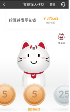 作為存錢罐,“小招喵”萌萌的外形招人喜歡,而當把智能小屏幕放入表帶,它又變身真正的兒童手表時刻陪伴孩子。家長登錄招商銀行APP“零花錢大作戰(zhàn)”功能,綁定小孩的銀行卡和儲蓄罐后,動動手指就能給孩子“發(fā)送”零花錢,與孩子實時互動,整個零花錢發(fā)送體驗非常有趣。家長還可以和孩子做“約定”,當孩子完成某項約定任務(wù),進行轉(zhuǎn)賬。而小朋友可以在自己的“小招喵”存錢罐上,可以看到零花錢金幣落下過程,還可以通過存錢罐去查詢零花錢余額。