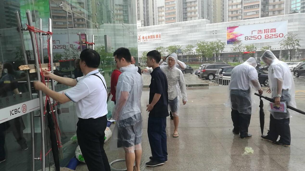 深圳新聞網(wǎng)訊 9日16日,中心附近最大風(fēng)力達(dá)14級的超級臺風(fēng)“山竹”來襲,廣東省發(fā)出新預(yù)警制度以來最大規(guī)模臺風(fēng)警報,深圳市進(jìn)入臺風(fēng)特別緊急防御狀態(tài),啟動防臺風(fēng)Ⅰ級應(yīng)急響應(yīng),全市實行“四?!薄樽畲蟪潭壬媳U峡蛻襞c員工的生命財產(chǎn)安全,不間斷為客戶提供優(yōu)質(zhì)金融服務(wù),工行深圳市分行在行領(lǐng)導(dǎo)的堅強(qiáng)領(lǐng)導(dǎo)下,全市各部門、各支行無懼風(fēng)雨、勠力同心、眾志成城,全力投入到“迎戰(zhàn)”臺風(fēng)的工作中。