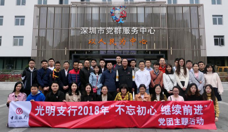 為進(jìn)一步豐富黨團(tuán)組織文化,增強(qiáng)黨員、團(tuán)員干事拼搏、創(chuàng)先爭(zhēng)優(yōu)的意識(shí),提升團(tuán)隊(duì)凝聚力和向心力,12月8日,中國(guó)銀行深圳光明支行前往深圳市黨群服務(wù)中心開(kāi)展“不忘初心繼續(xù)前進(jìn)”黨團(tuán)主題活動(dòng),該行轄內(nèi)中共黨員、預(yù)備黨員、發(fā)展對(duì)象、積極分子及共青團(tuán)員共計(jì)50余人參加。