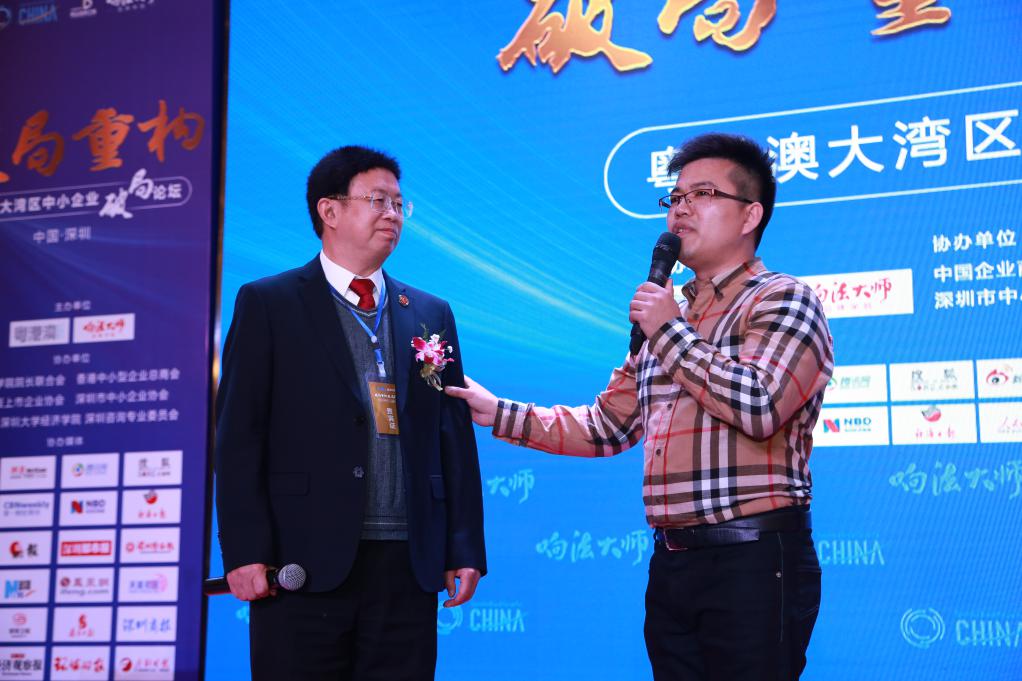 為了喚起粵港澳大灣區(qū)民企定力,增強(qiáng)民企信心,激發(fā)民企創(chuàng)造力。由響法大師與粵港澳觀察共同主辦,中國企業(yè)商學(xué)院院長聯(lián)合會(huì)、深圳市新三板上市企業(yè)協(xié)會(huì)等眾多商協(xié)會(huì)協(xié)辦的“破局重構(gòu)做出結(jié)果”粵港澳大灣區(qū)中小企業(yè)破局論壇于2019年1月9日在深圳福田圣廷苑三樓錦繡廳舉行。