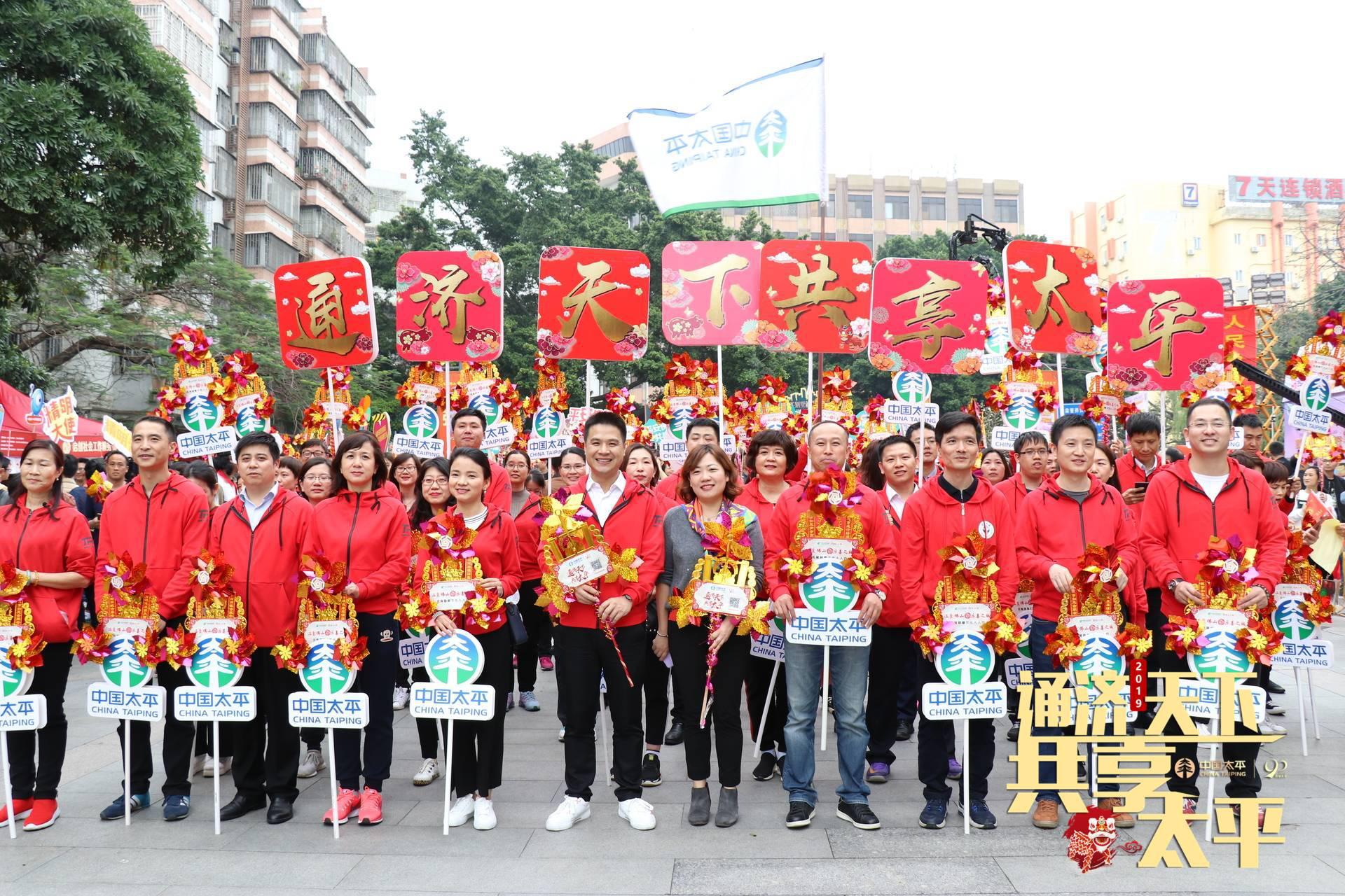 當(dāng)日下午,在佛山市領(lǐng)導(dǎo)宣布活動(dòng)啟動(dòng)后,太平人壽佛山分公司、太平財(cái)險(xiǎn)佛山中心支公司、太平養(yǎng)老佛山中心支公司等50名代表組成企業(yè)方陣團(tuán),與市內(nèi)慈善先進(jìn)人物、市直機(jī)關(guān)人員代表、愛(ài)心公益組織、市民代表等12個(gè)方陣上萬(wàn)人組成浩浩蕩蕩的隊(duì)伍,從佛山市政府出發(fā),一手拿著金燦燦的風(fēng)車(chē)和宣傳標(biāo)語(yǔ)牌,一邊熱情高呼“通濟(jì)天下·共享太平”的宣傳口號(hào)通過(guò)通濟(jì)橋,向市民展現(xiàn)中國(guó)太平良好的精神風(fēng)貌,引來(lái)兩邊路人的駐足關(guān)注。根據(jù)官方數(shù)據(jù)顯示,當(dāng)天共計(jì)79.52萬(wàn)人參與行通濟(jì)。