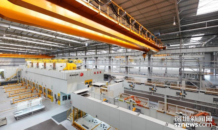 車身車間總占地面積9.9萬㎡,采用互聯(lián)機(jī)器人、柔性NC定位系統(tǒng)、柔性夾具切換系統(tǒng)、自動(dòng)化輸送系統(tǒng),標(biāo)準(zhǔn)化工藝體系、三層環(huán)網(wǎng)智能管理系統(tǒng)、國際安全標(biāo)準(zhǔn),主線自動(dòng)化率95%;采用柔性智能生產(chǎn)線,在同一條生產(chǎn)線可完成8個(gè)不同的車型無節(jié)拍損失自動(dòng)切換和混線生產(chǎn)。