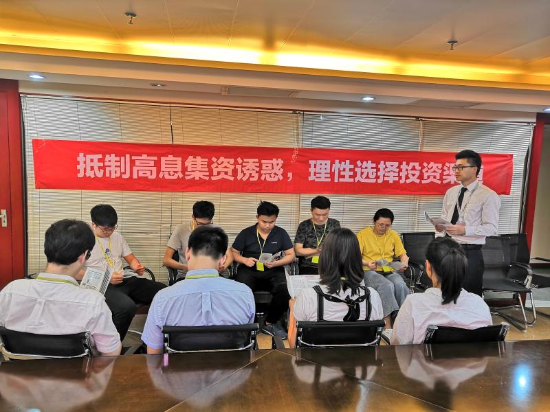 地鐵大廈支行則在深圳市銀服通企業(yè)管理咨詢有限公司舉行金融知識(shí)小講座。通過發(fā)放宣傳折頁、懸掛橫幅、現(xiàn)場(chǎng)講解等形式,緊緊圍繞識(shí)別抵制高息集資誘惑、做好財(cái)務(wù)規(guī)劃、選擇適當(dāng)?shù)漠a(chǎn)品投資理財(cái)?shù)戎R(shí)進(jìn)行講解。同時(shí)溫馨提示企業(yè)員工在辦理銀行卡、匯款、房貸還款等業(yè)務(wù)時(shí)的小竅門,獲企業(yè)員工一致好評(píng)。