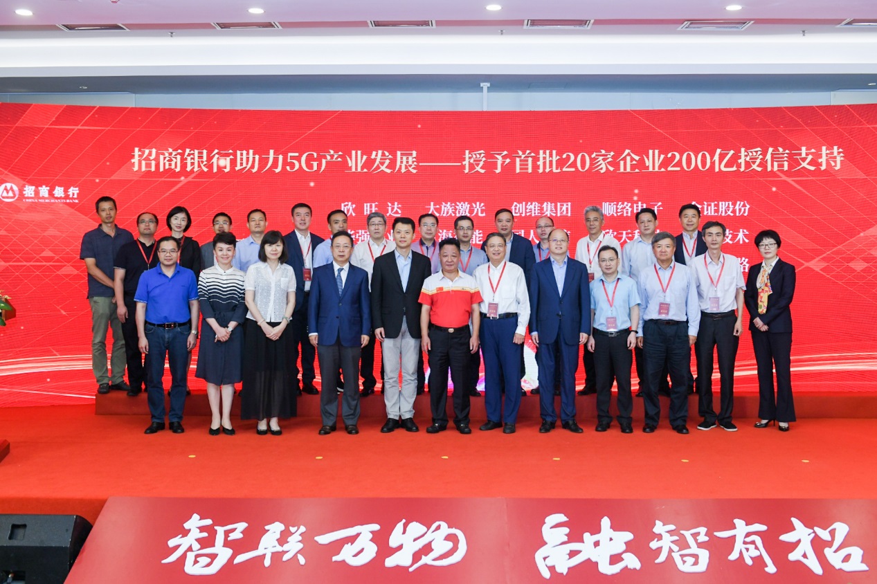 同時,在活動現(xiàn)場招商銀行深圳分行與出席的20家5G產(chǎn)業(yè)生態(tài)上市公司簽署戰(zhàn)略合作協(xié)議,招商銀行授予首批5G合作企業(yè)共計200億意向性授信額度。