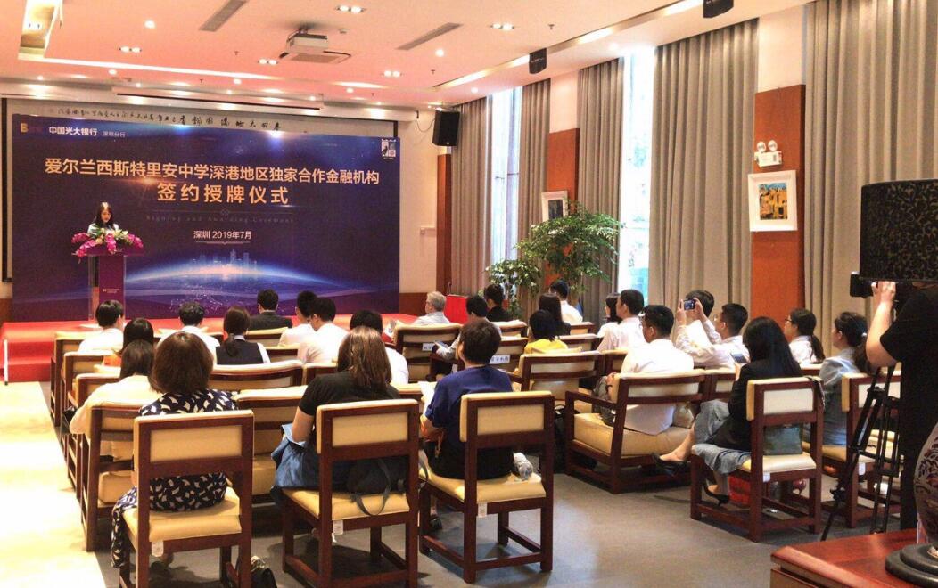 中國(guó)光大銀行深圳分行與愛爾蘭頂級(jí)私立男校簽署獨(dú)家合作授牌儀式現(xiàn)場(chǎng)