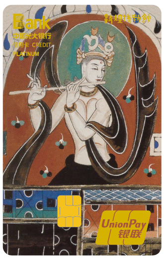 光大敦煌聯(lián)名信用卡卡面設(shè)計取材于敦煌壁畫,有敦煌大智文殊白金卡、敦煌天宮伎樂白金卡以及敦煌五百強盜成佛菁英白金卡三種信用卡。光大敦煌聯(lián)名信用卡的卡面設(shè)計靈感均來源于敦煌壁畫,大智文殊白金卡畫面為文殊菩薩結(jié)跏坐于青面獅虬首仙獅背上。文殊菩薩是專司智德、辯才第一的大菩薩,尊號“大智文殊”。天宮伎樂白金卡主體畫面為伎樂天,取材于莫高窟288窟,營造了佛陀講經(jīng)說法時佛國世界歡樂祥和的氛圍。五百強盜成佛菁英白金卡卡面設(shè)計取自“五百強盜成佛”的壁畫故事,佛用神通使被剜去雙眼的強盜重見光明,并對他們進行點化,五百強盜潛心苦修終成五百羅漢。光大敦煌聯(lián)名信用卡的卡面設(shè)計將傳統(tǒng)文化融入現(xiàn)代金融產(chǎn)品,極具敦煌文化的風(fēng)格。