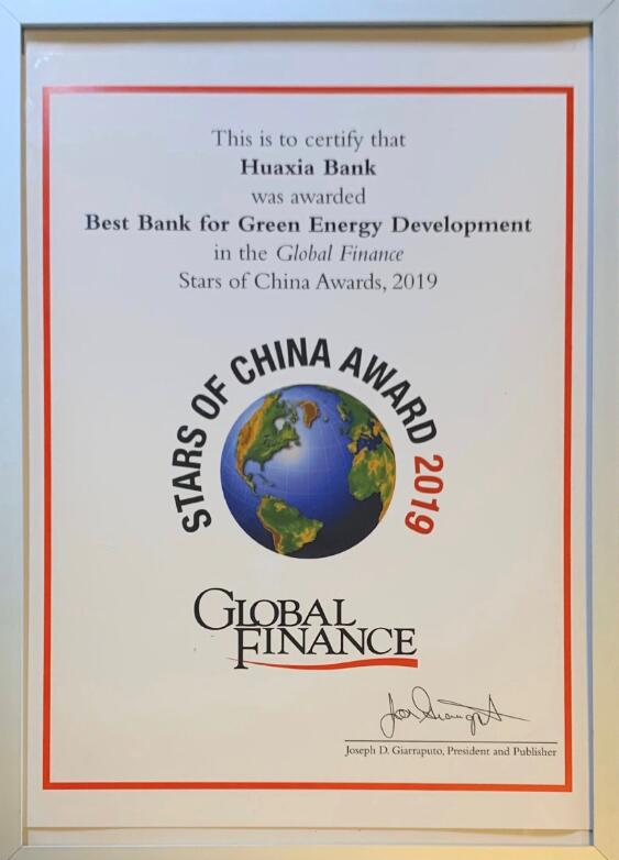 華夏銀行獲《環(huán)球金融》雜志“中國之星”最佳綠色能源開發(fā)銀行獎