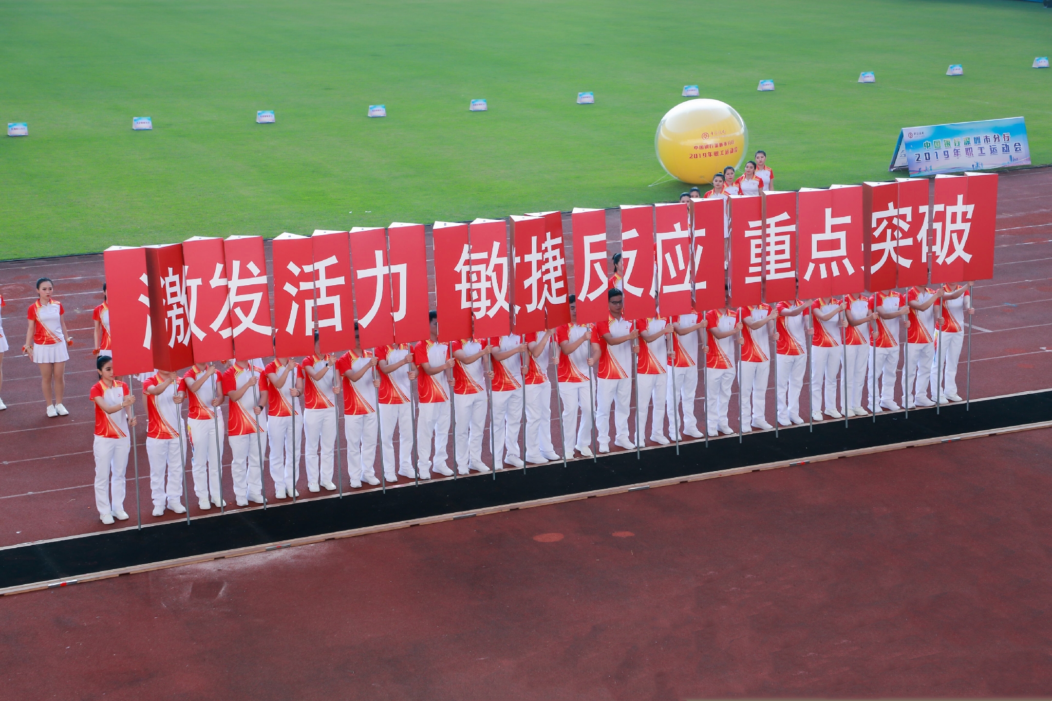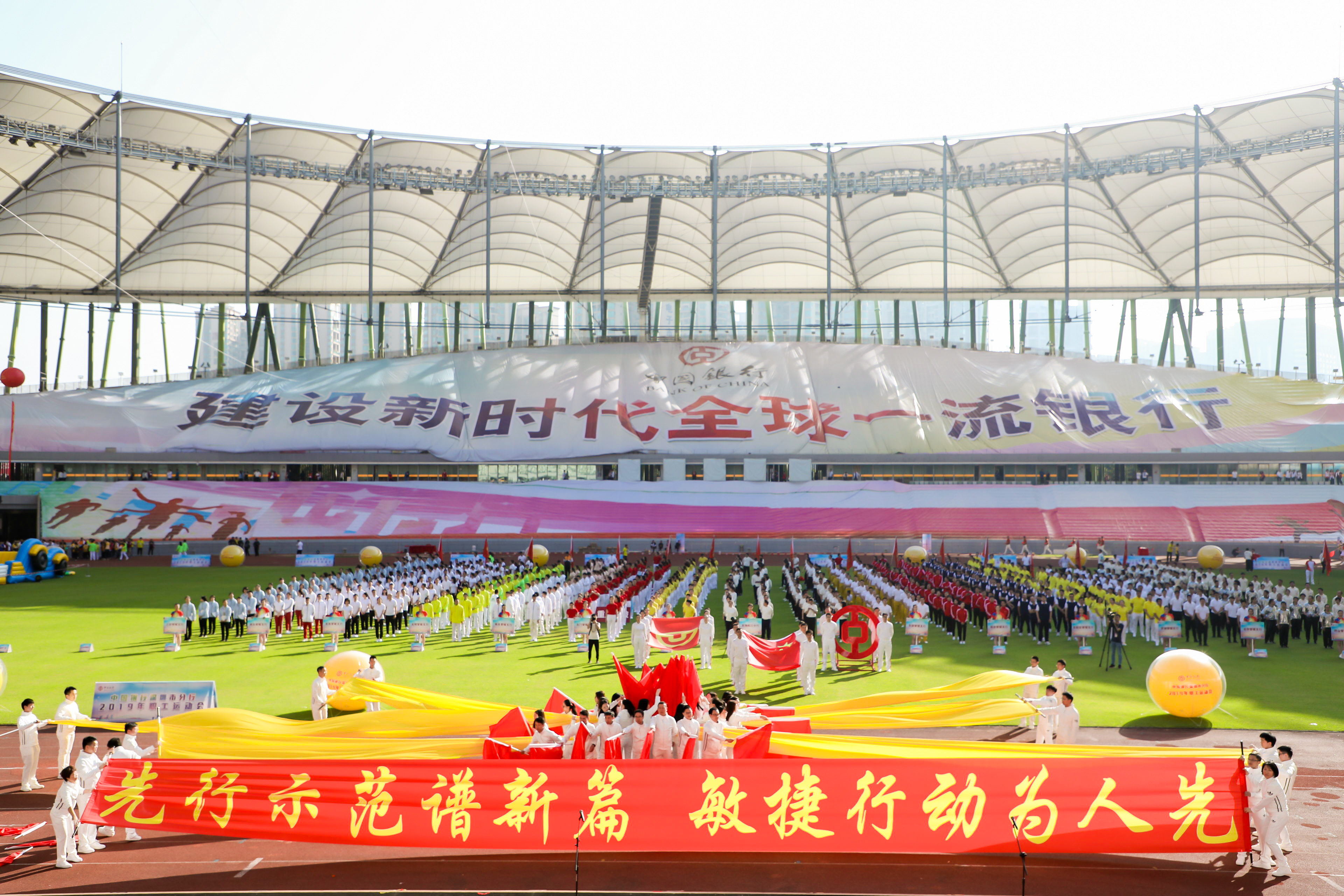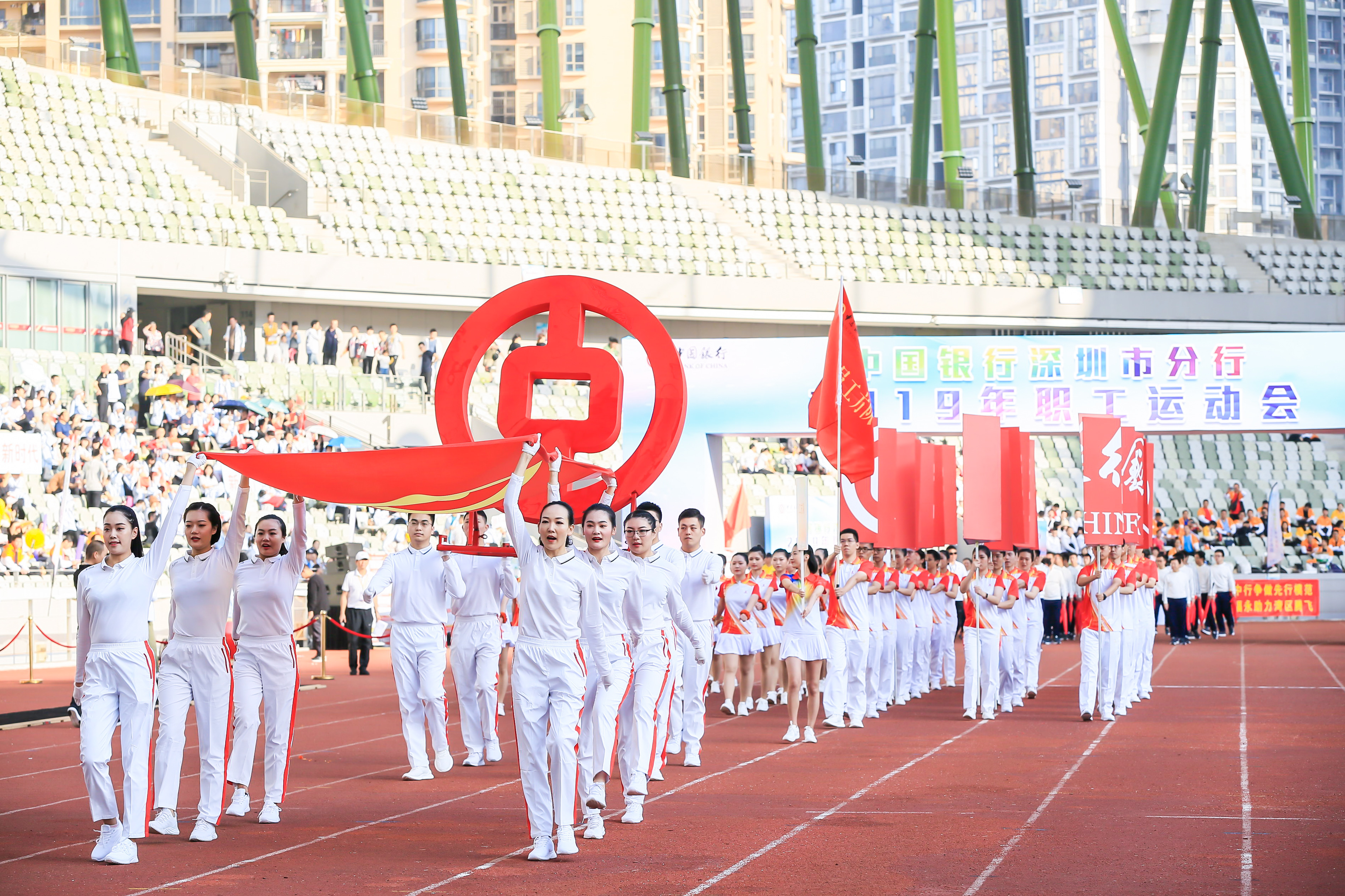 在新中國(guó)成立70周年之際,在如火如荼地服務(wù)支持深圳建設(shè)社會(huì)主義先行示范區(qū)之時(shí),11月17日,以“激發(fā)活力、敏捷反應(yīng)、重點(diǎn)突破”為主題的中國(guó)銀行深圳市分行2019年職工運(yùn)動(dòng)會(huì)在深圳寶安體育場(chǎng)拉開帷幕。深圳中行行長(zhǎng)姚華明率市分行領(lǐng)導(dǎo)班子成員出席開幕式,深圳市寶安區(qū)副區(qū)長(zhǎng)婁巖峰受邀出席。