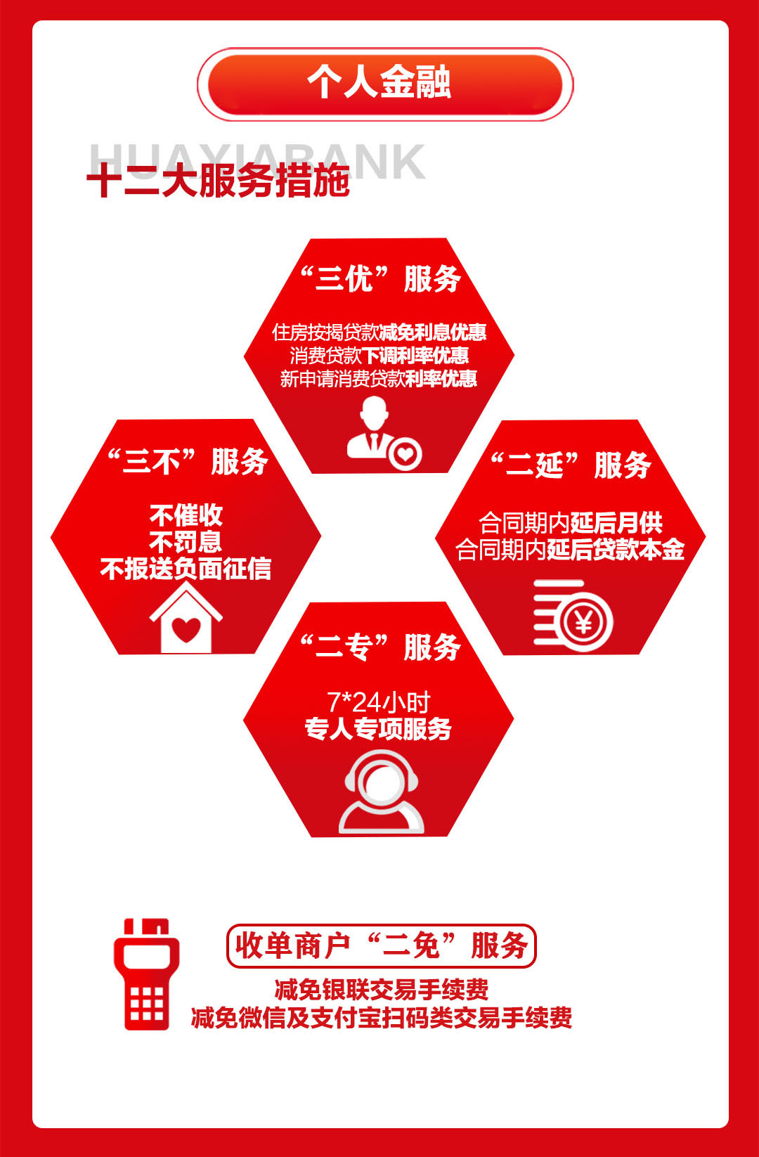 三、個(gè)人金融“三優(yōu)”、“三不”、“二延”、“二?!?、“二免”,服務(wù)有力保障全面