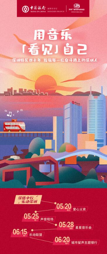 據了解,“深情中行樂動深圳”主題活動將持續(xù)至7月,深圳中行將與深圳廣電集團將陸續(xù)推出“解鎖深圳成就”H5互動、“星星音樂會”、“聲音現場”、主題TVC、樂動聯盟京東包裹、城市留聲主題銀行等子活動,與深圳市民共同發(fā)現城市中的溫暖、奮斗中的故事,為深圳特區(qū)四十年唱出贊美的心聲。