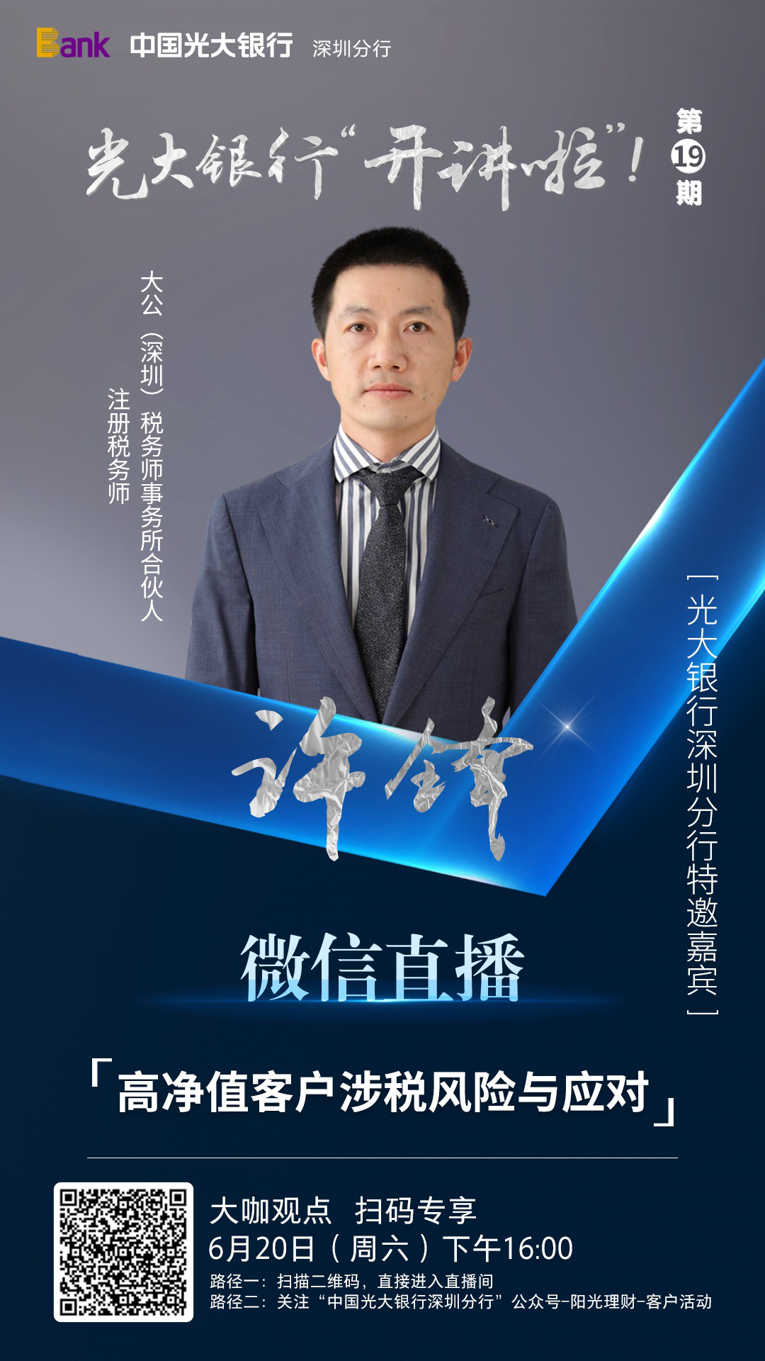 見證客戶端?深圳新聞網(wǎng)2020年6月19日訊 6月20日,光大銀行深圳分行攜手大粵教育,在線開講第十九期《光大銀行"開講啦“!》公益課堂。