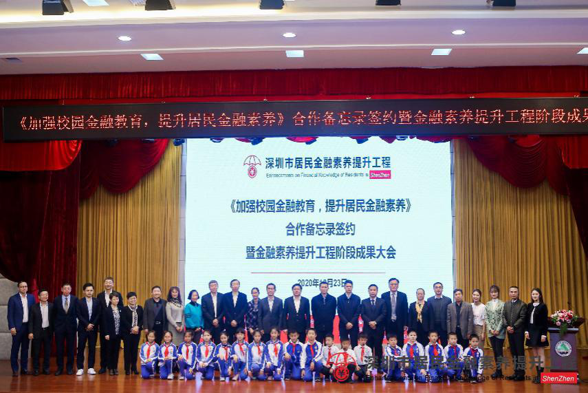 深圳新聞網(wǎng)·見圳客戶端2020年12月28日訊 近日,由中國(guó)人民銀行深圳市中心支行、深圳銀保監(jiān)局、深圳證監(jiān)局、深圳市地方金融監(jiān)督管理局、深圳證券交易所、深圳市教育局、福田區(qū)人民政府主辦,深圳市民政局協(xié)辦的《加強(qiáng)校園金融教育,提升居民金融素養(yǎng)》合作備忘錄簽約暨金融素養(yǎng)提升工程階段成果大會(huì)在福田實(shí)驗(yàn)僑香學(xué)校舉行。深圳市政府、相關(guān)機(jī)構(gòu)領(lǐng)導(dǎo),市各金融機(jī)構(gòu)代表、市區(qū)中小學(xué)校領(lǐng)導(dǎo)、街道社區(qū)負(fù)責(zé)人以及僑香學(xué)校的師生們等逾200人出席了大會(huì)。