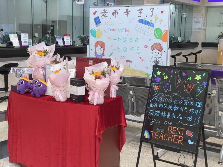 深圳新聞網(wǎng)2021年9月10日訊 (記者 朱琳 通訊員 樓蓉 沈婷)金秋九月,秋高氣爽,為迎接第37個(gè)教師節(jié),深圳分行開(kāi)展“感恩教師節(jié)”系列活動(dòng),部分網(wǎng)點(diǎn)通過(guò)教師節(jié)專屬活動(dòng),為廣大教師客戶送上了節(jié)日的鮮花。9月10日,在深圳分行營(yíng)業(yè)部辦理業(yè)務(wù)的人民教師均可獲贈(zèng)精美禮品一份。