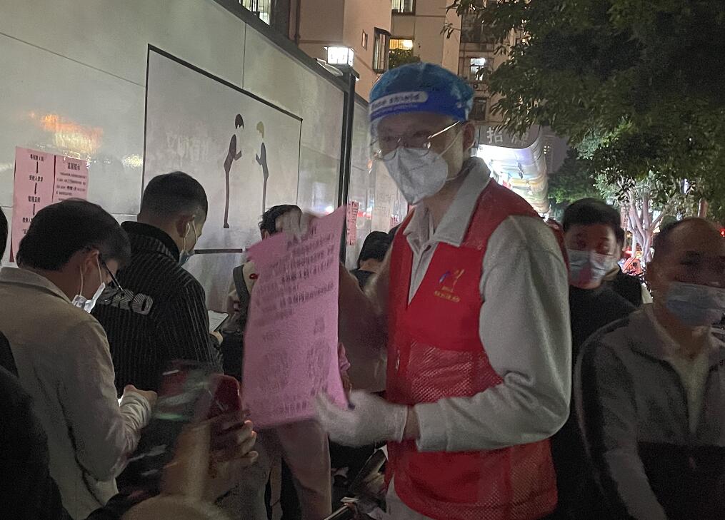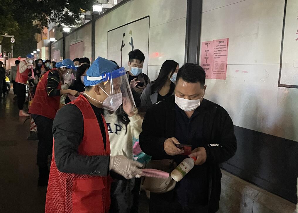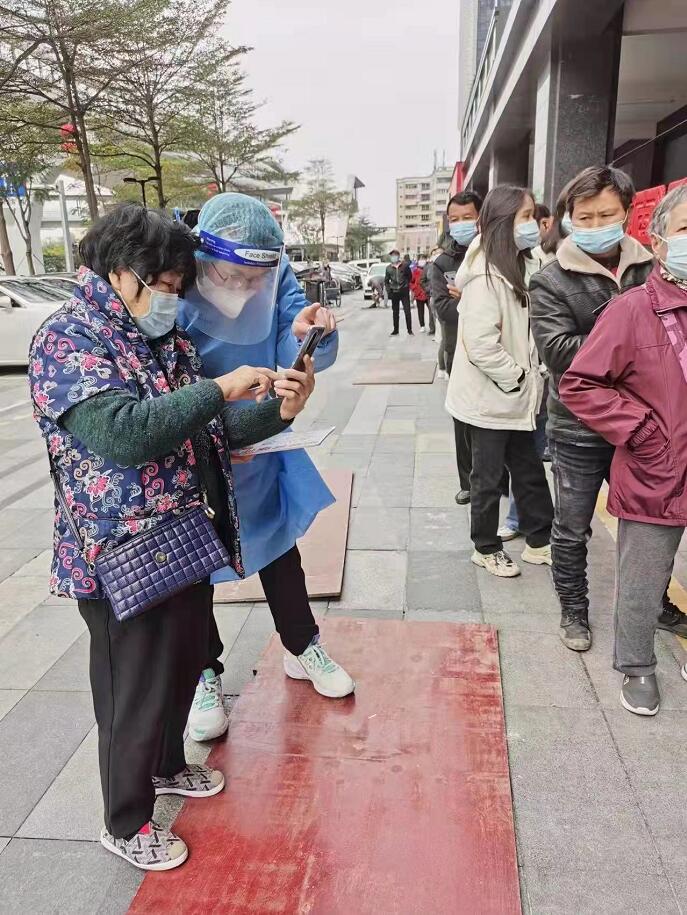 2月17日,景華社區(qū)公園核酸篩查檢測點。面對大量參與核酸檢測的市民,青年志愿者耐心做好指引解釋,指導(dǎo)群眾掃碼、采集信息,教居民操作檢測小程序,開展防疫宣傳,維護現(xiàn)場秩序,保障核酸檢測工作井然有序進行。因核酸檢測點在居民區(qū),老年人較多,對核酸檢測登記小程序操作流程不熟悉,再加上是夜晚檢測,現(xiàn)場光線不足,給服務(wù)工作帶來一些難題,但青年志愿者們沒有退縮,而是拿出在工作中服務(wù)客戶的勁頭,更細致、更耐心解決問題,做好志愿服務(wù)。