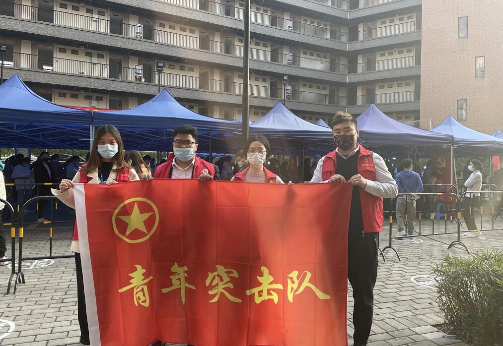 2月18日,青年志愿者們顧不上吃晚飯,一下班就奔赴南園社區(qū)核酸篩查檢測點,與南園社區(qū)的志愿者們一起投入到維護核酸采集秩序的隊伍中,一直服務(wù)到深夜。