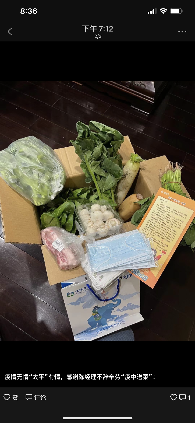 為積極應(yīng)對疫情,太平人壽上海分公司迅速反應(yīng),推出“太平守滬為愛加油”客戶關(guān)愛計劃。公司與滬上知名果蔬種植基地合作,將新鮮采摘的蔬果,由持有48小時內(nèi)核酸陰性證明的太平保險代理人,為客戶朋友直線送達。