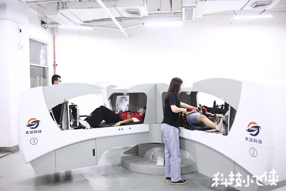 除了太空廢棄物處理實(shí)驗(yàn),航天訓(xùn)練體驗(yàn)也得到了孩子們的認(rèn)可?;顒?dòng)現(xiàn)場(chǎng),短臂離心機(jī)、模擬失重床等設(shè)備模擬出了航天員的日常訓(xùn)練場(chǎng)景,還沒(méi)等講解老師解說(shuō)完,就有不少小飛俠們歡呼雀躍,迫不及待地想體驗(yàn)航天員日常訓(xùn)練,旋轉(zhuǎn)、漂浮,小朋友們玩得不亦樂(lè)乎,在玩樂(lè)的同時(shí),也學(xué)習(xí)到了更多航天知識(shí)。