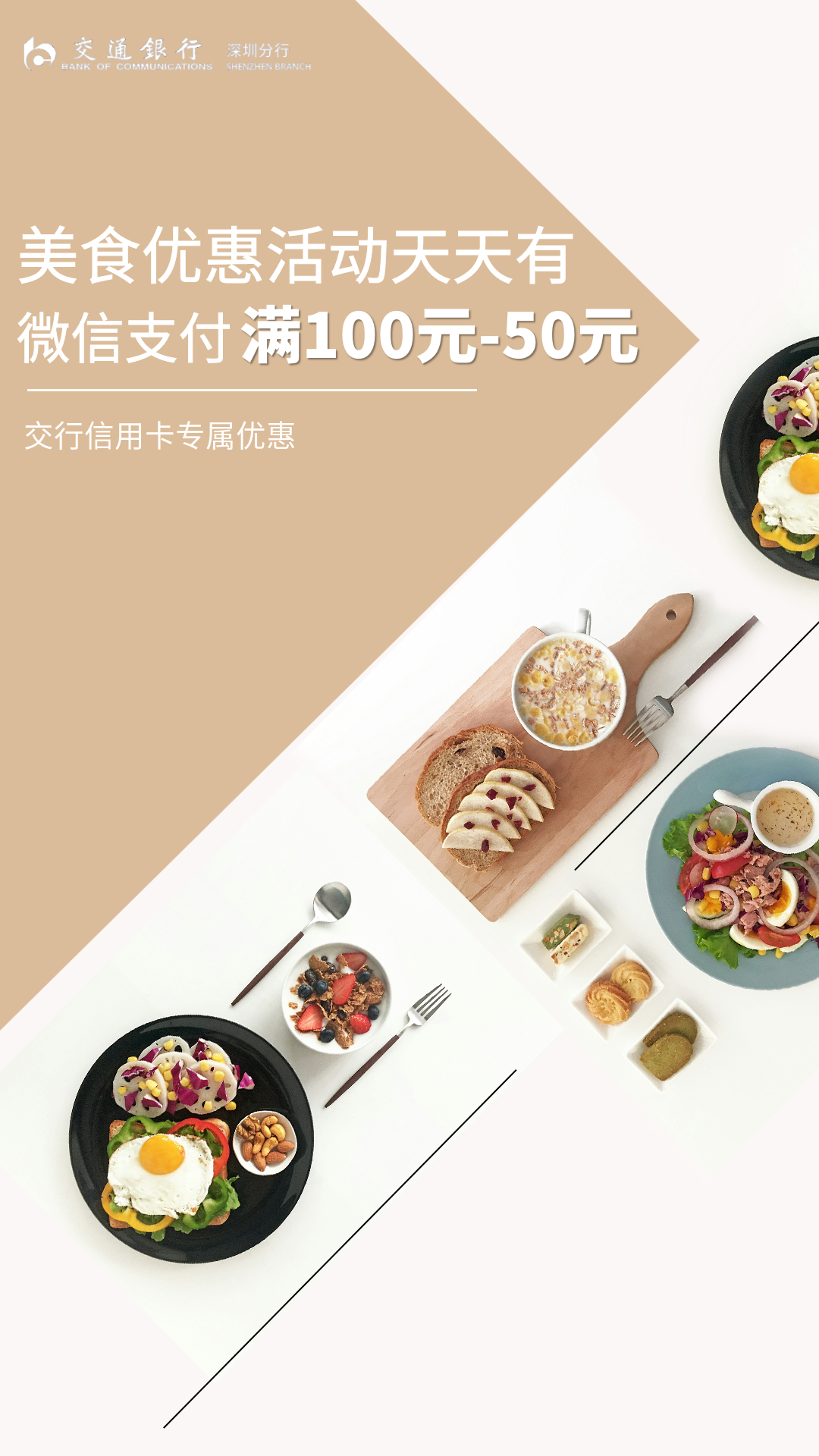 自2022年7月9日2022年12月31日,深圳交行用戶到指定商家,通過(guò)微信買單,立享滿100元-50元的優(yōu)惠,每月最高兩次機(jī)會(huì),大牌美味等你享!