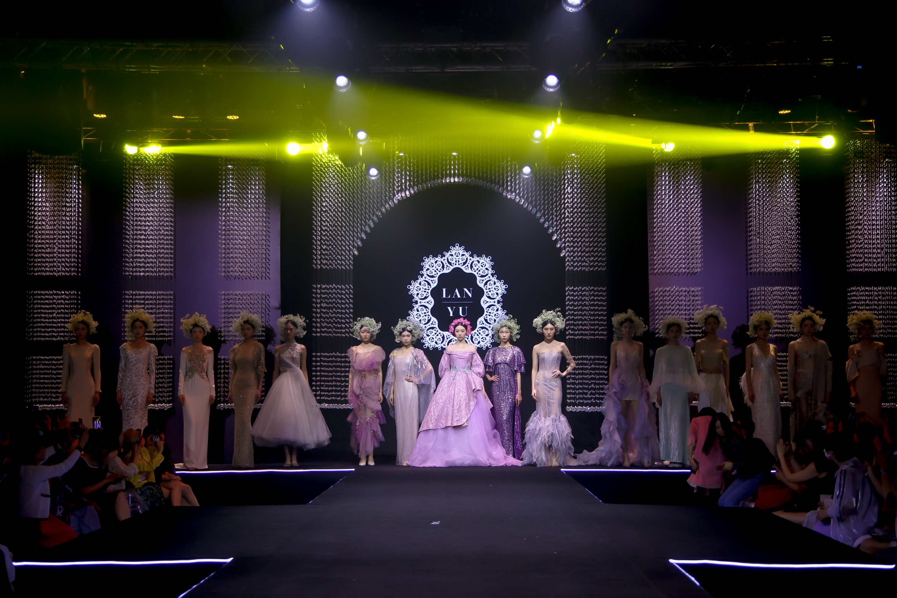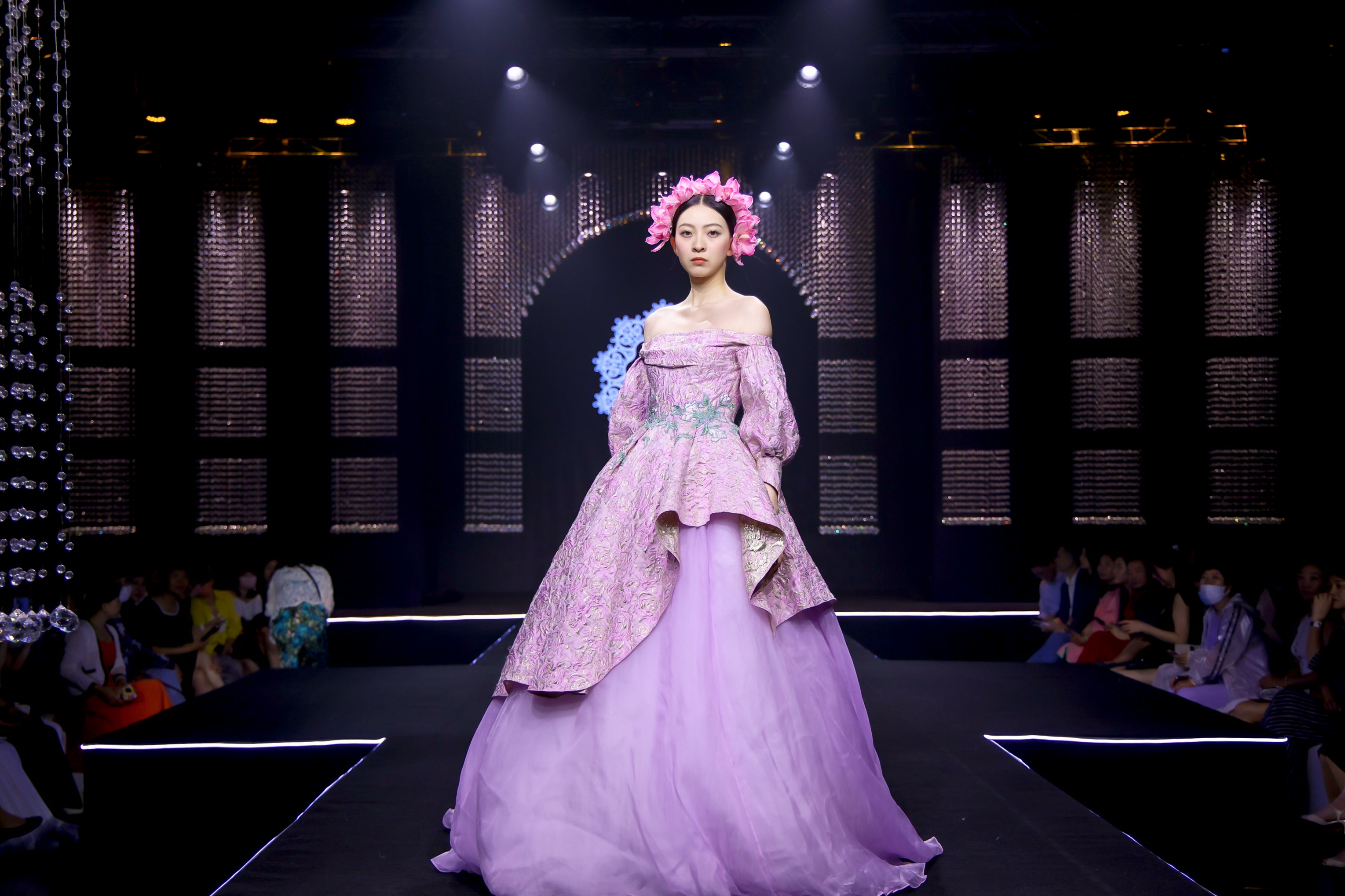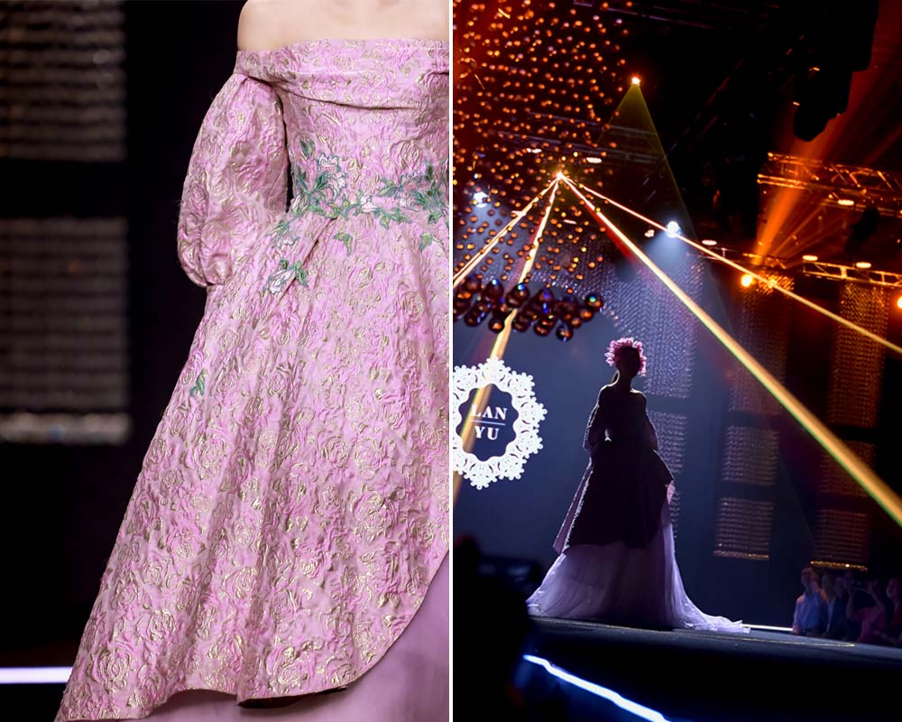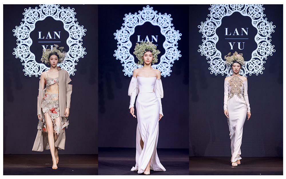 現(xiàn)場更有LANYU高定禮服展示,將中式美學意境與西式時尚剪裁完美融合,同時加重了蘇繡非遺元素的應用比例,將更多的非遺技藝融入服飾創(chuàng)作中,呈現(xiàn)出超高藝術(shù)水準。