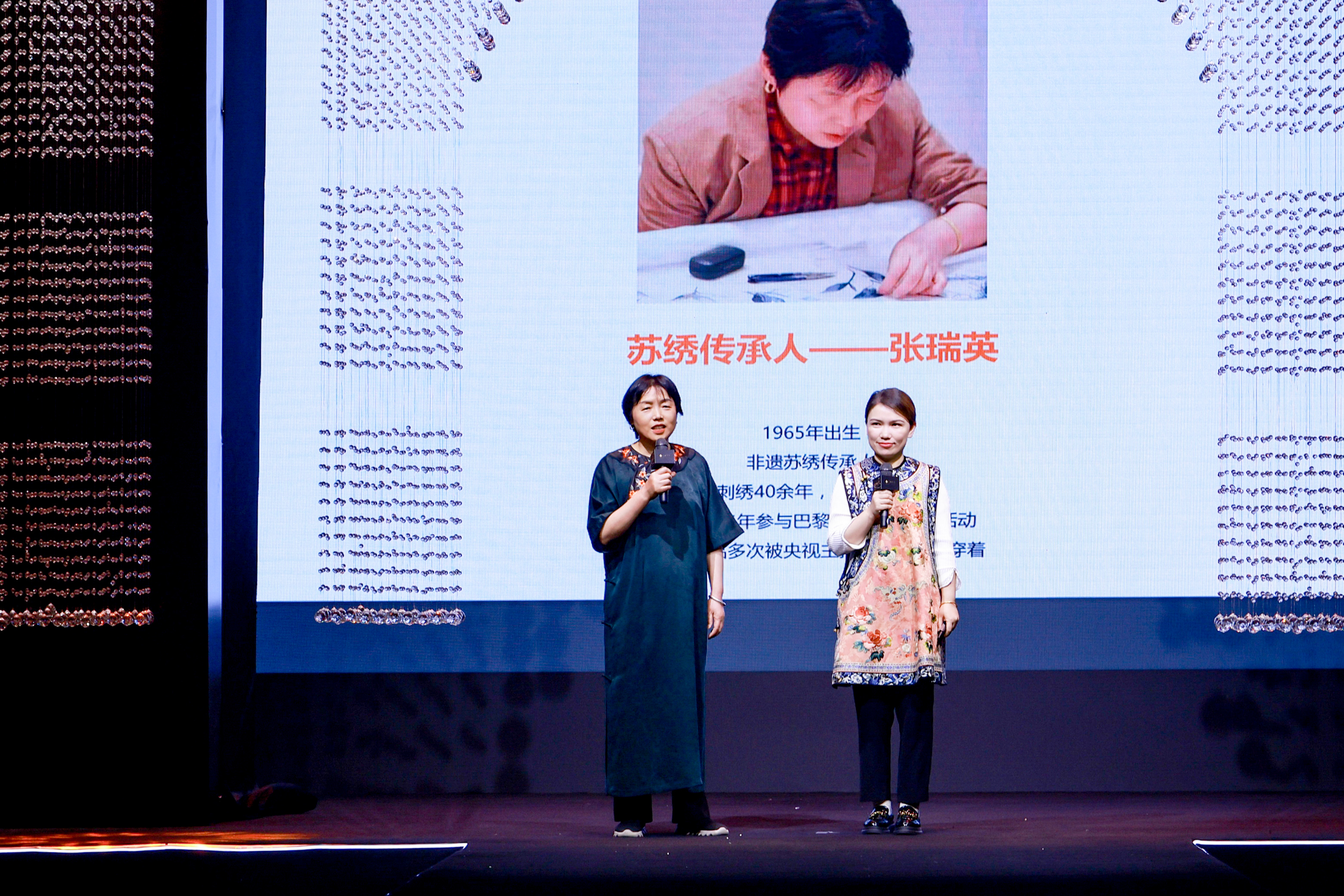 蘇繡傳人張瑞英現(xiàn)場進行了蘇繡文化講解,讓非遺傳承技藝再上舞臺,將非遺元素運用在當代的生活方式中,展現(xiàn)非遺文化非同尋常的光芒之處,傳播非遺重要傳承內(nèi)核,用服裝承載國風文化,傳遞中國風采。當以蘇繡手藝復刻的百年服飾再現(xiàn)于秀場,傳統(tǒng)技藝真實演繹“經(jīng)典永流傳”,彰顯了傳承中國文化的手工技藝“奢侈品”含義。