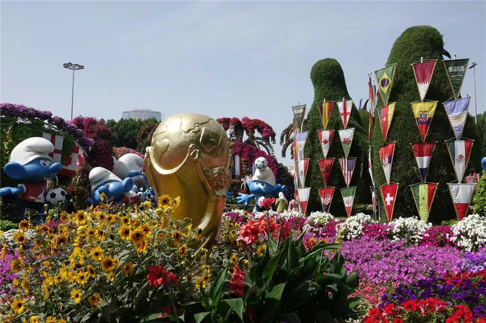 4500萬株鮮花以不同的主題分區(qū)布展,今年的主題包括野生動物保護、卡塔爾世界杯、藍精靈等。李仁奇 攝