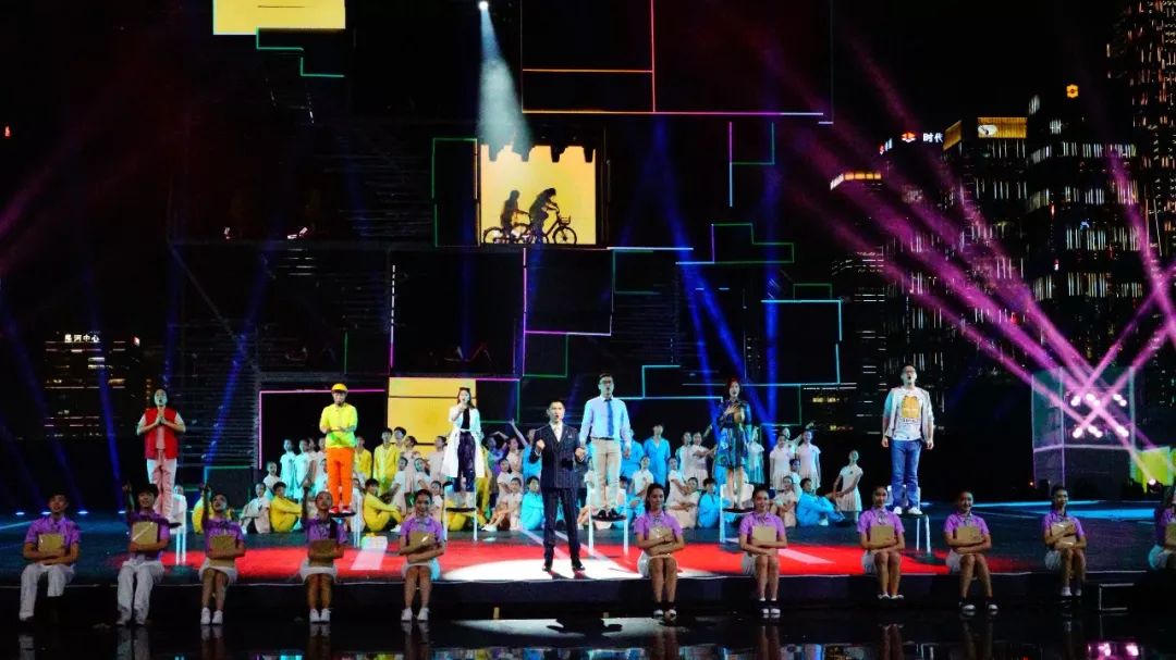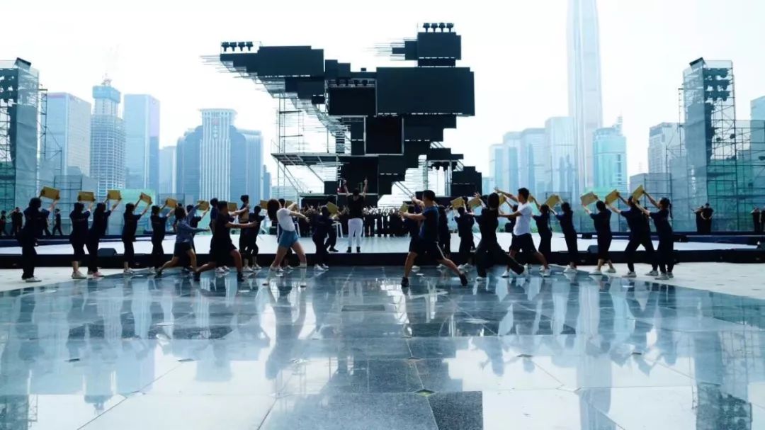 主題曲《新的一天》整首歌以小見大,用年輕上班族的拼搏精神體現(xiàn)深圳人共性,引領(lǐng)時(shí)代進(jìn)步潮流?!? 拒絕空想冒險(xiǎn)/誰不渴望明天/有夢(mèng)就要實(shí)現(xiàn) ”,交織的夢(mèng)想成就了深圳。“ 新的一天就在眼前/我的命運(yùn)我要自己改變 ”,改革開放賦予了這個(gè)時(shí)代勇敢堅(jiān)持的精神。為了排演這個(gè)節(jié)目,導(dǎo)演卓依·馬可尼利和全體演員歷經(jīng)了一個(gè)月的排練,克服了演出場(chǎng)地露天的高溫,在整個(gè)節(jié)目近五分鐘的時(shí)長里,展現(xiàn)了新時(shí)代青年對(duì)于工作的拼勁與堅(jiān)韌、活力和激情,彰顯了剛?cè)嵯酀?jì)、自強(qiáng)不息的深圳精神。