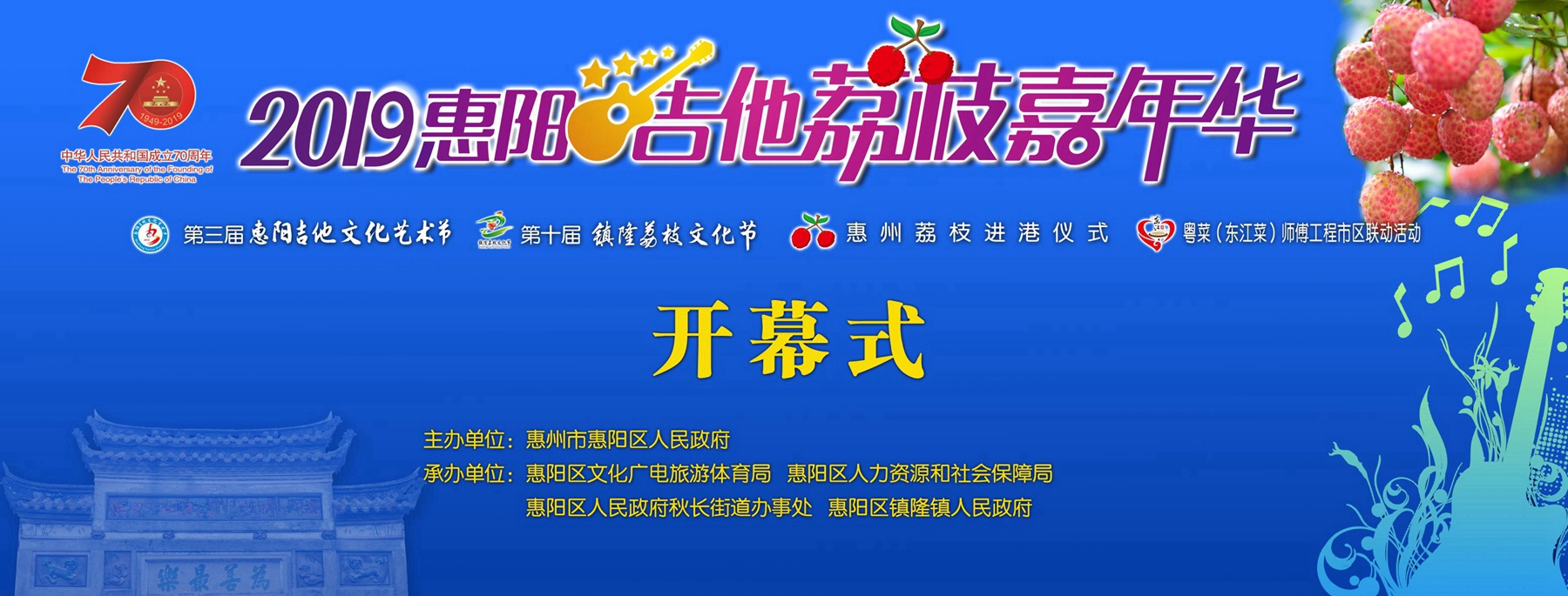 6月21日上午,2019惠陽吉他荔枝嘉年華開幕式在惠陽體育會(huì)展中心舉行,這標(biāo)志著惠陽一年一度“吉他+荔枝”的盛夏之約正式開啟,十大精彩活動(dòng)持續(xù)至7月10日。這將進(jìn)一步提升惠陽“吉他+荔枝”品牌品質(zhì),提升惠陽知名度、美譽(yù)度,并充分展示惠陽鮮明的產(chǎn)業(yè)特色、深厚的文化底蘊(yùn)和豐富的旅游產(chǎn)品。