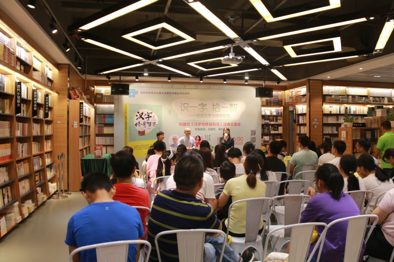 活動由深圳書城羅湖城張華女士主持,邀請到壹讀書會創(chuàng)始人、知名閱讀推廣人、 《漢字與修身智慧》作者劉建彪先生和全國十佳文學(xué)教師、廣東省閱讀推廣“點燈人”譚妙蓉女士擔(dān)任對話嘉賓,為聽眾講述漢字的起源以及他們根據(jù)切身體會對漢字的解讀。