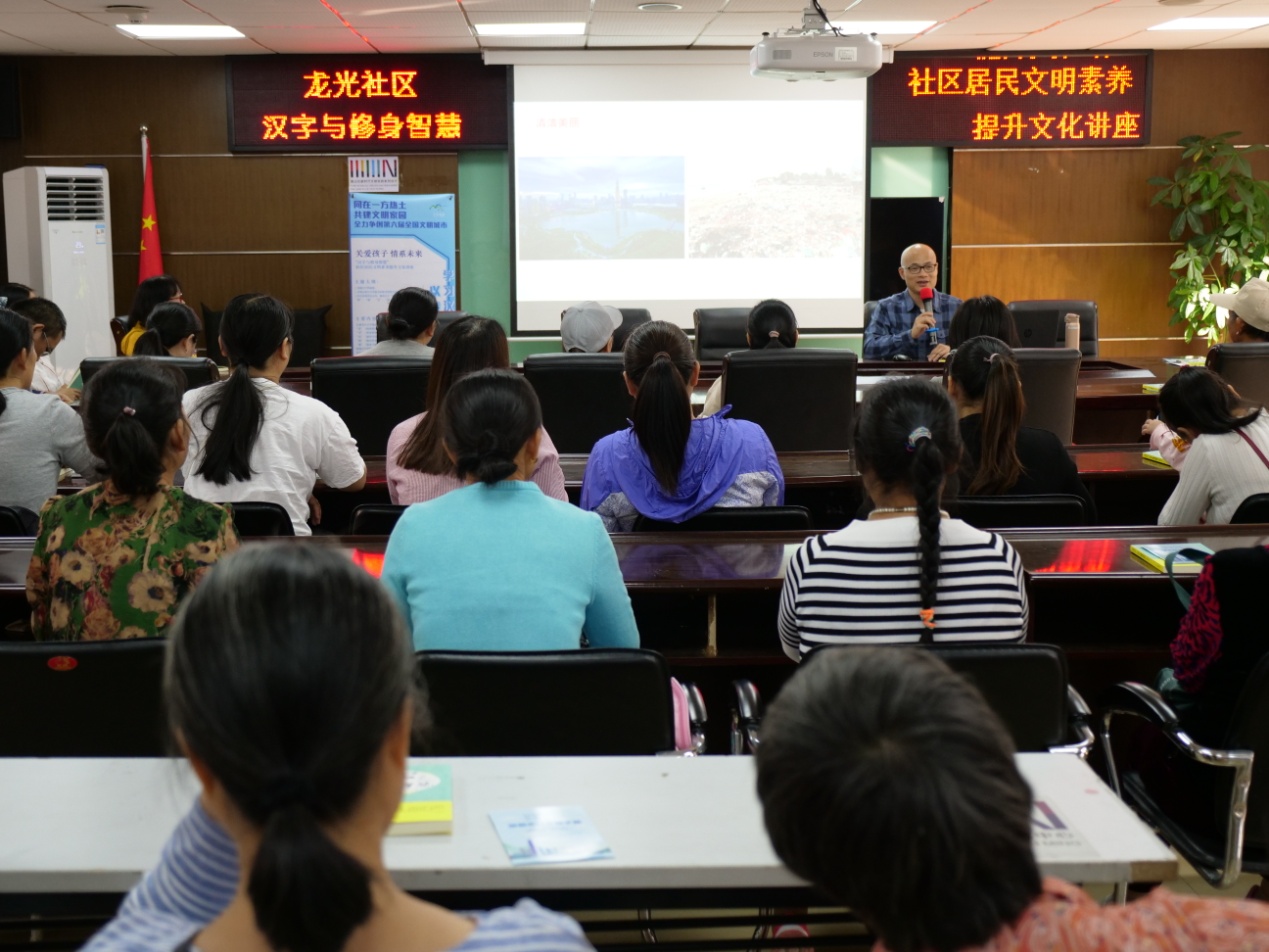 深圳新聞網(wǎng)訊 為更一步提升社區(qū)居民文化素養(yǎng),推動社區(qū)創(chuàng)建第六屆全國文明城市工作邁上新的臺階,11月19日下午,龍光社區(qū)工作站組織社區(qū)居民參加“‘漢字與修身智慧’社區(qū)居民文明素養(yǎng)提升”文化講座,邀請壹讀書會創(chuàng)始人、知名閱讀推廣人、《漢字與修身智慧》的作者劉建彪擔(dān)任主講嘉賓,從中華文明的基因(漢字)出發(fā),解讀深圳市民公約,旨在啟發(fā)居民在中華優(yōu)秀傳統(tǒng)文化的感召之下,踐行文明禮儀,用實際行動去推進(jìn)文明城市的創(chuàng)建。