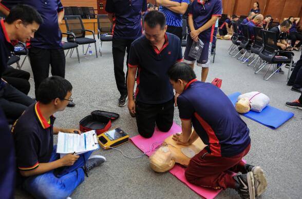 據(jù)施救的市體育中心網(wǎng)羽中心工作人員表示:“入職期間公司有系統(tǒng)的組織我們參加初級救護(hù)員培訓(xùn),自己也掌握了一些急救措施,包括心肺復(fù)蘇按壓,AED的使用及傷口處理等,但實際遇到這種情況還是第一次,當(dāng)時救人的時候還是很緊張的,最終挽回了一個生命,急救知識、技能的普及顯得尤為重要的。”