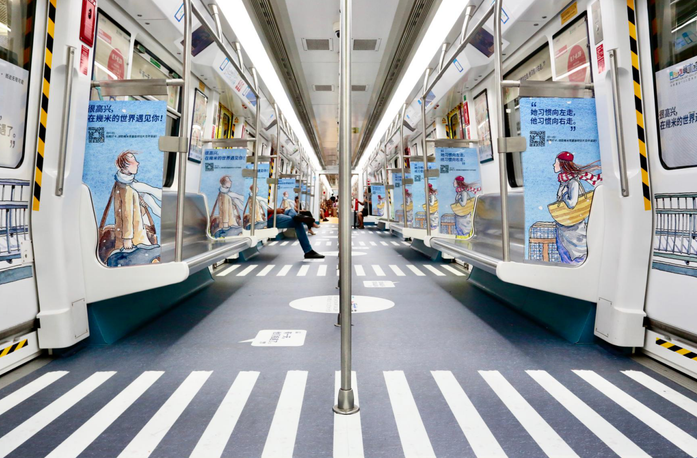 “我信仰藝術(shù),我覺得它太……太厲害了!”因?yàn)橄M阉囆g(shù)的美好分享給所有人,幾米創(chuàng)作時(shí)總是盡量把自己最在乎的故事和結(jié)構(gòu)變得更簡單些,打破國界,讓全世界的讀者和畫迷都能在他的故事里找到共鳴與寄托。為了更好地傳遞這種藝術(shù)體驗(yàn),本次藝術(shù)計(jì)劃還讓幾米筆下的人物走進(jìn)地鐵車廂和站廳,等待人們的不期而遇。觀眾在列車或站點(diǎn)打卡拍照,參與“在幾米的世界遇見你”征集活動(dòng),就有機(jī)會(huì)獲得“目的地美術(shù)館”限量版幾米明信片和環(huán)保袋。